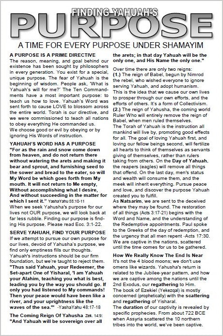 PURPOSE (Finding Yahuah's Purpose) - A time for Every Purpose Under Shamayim