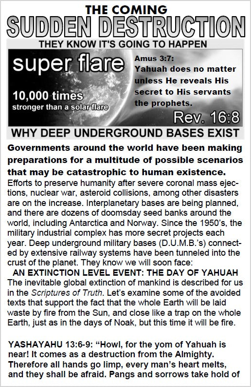 WHY DEEP UNDERGROUND BASES EXIST. SUPER FLARE 10,000 times stronger than a solar flare. Governments around the world have been making preparations for a multitude of possible scenarios that may be catastrophic to human existence. Efforts to preserve humanity after severe coronal mass ejections, nuclear war, asteroid collisions, among other disasters are on the increase.